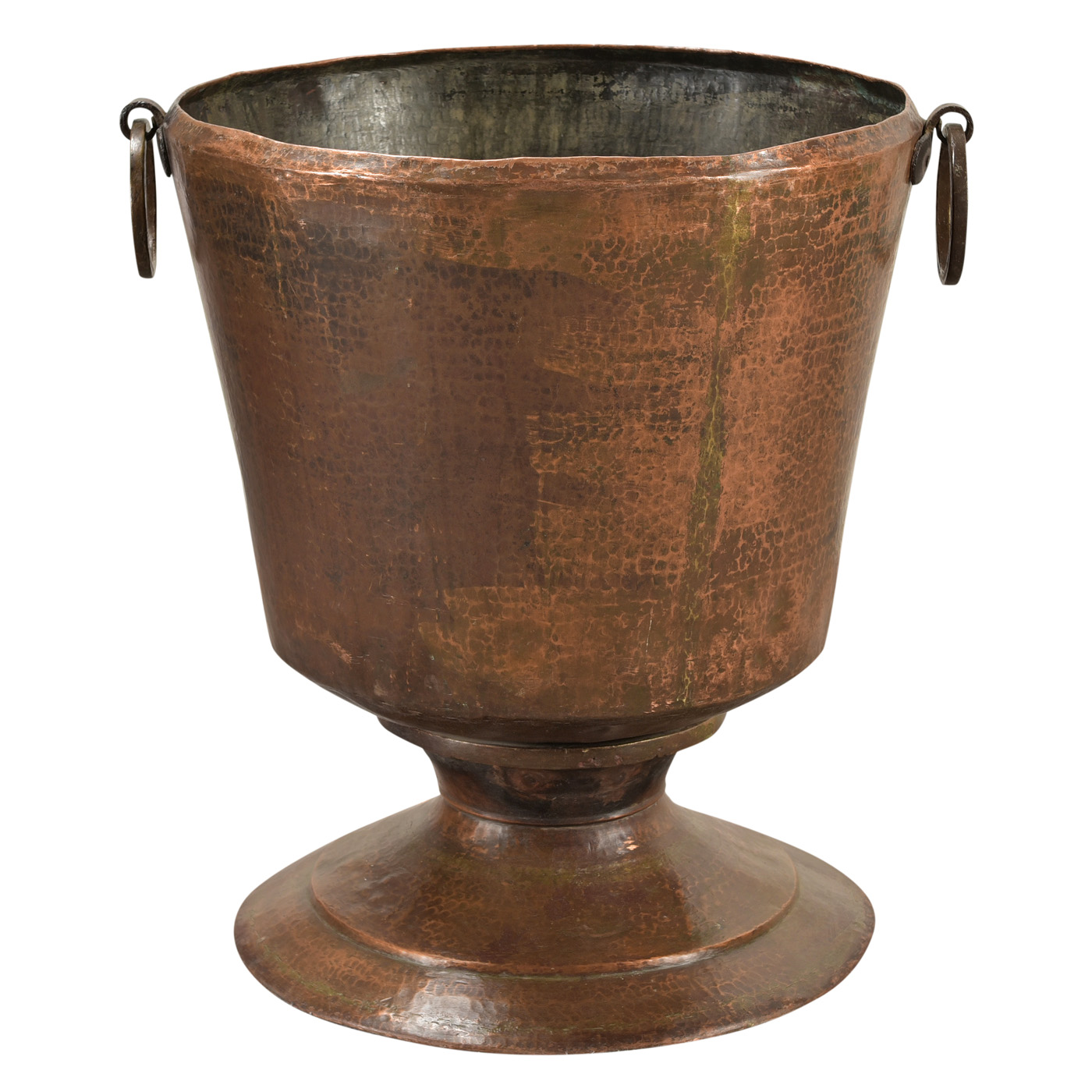 Accessories, Planters and Pots, Accessories- ALL$2,475.00Bring Old World and timeless craftsmanship into your space with this antique hammered copper pot. Featuring a rich, warm patina, this piece tells a story of tradition and beauty. The hand-hammered texture across the surface gives it a tactile and artisanal quality. The dark copper finish adds character and depth. Two round decorative handles attach to the sides with reinforced copper. We love to use this planter for small trees or simply as décor.